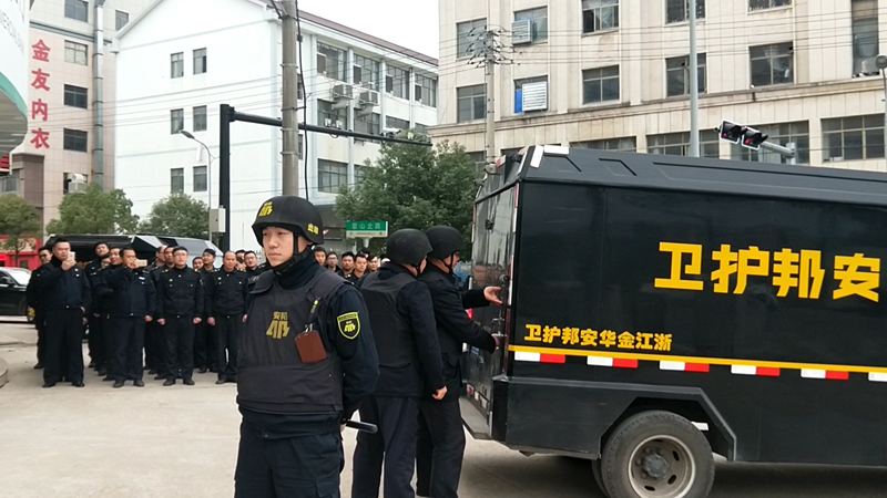 这是金华安邦东阳农商中队与东阳农商银行加钞组联合举行的一次金融押运防抢演练。目的是为了与行方人员共同提高应对处置突发事件的能力,增强守押人员团队协作能力和安全防范意识,确保日常守押工作安全开展。