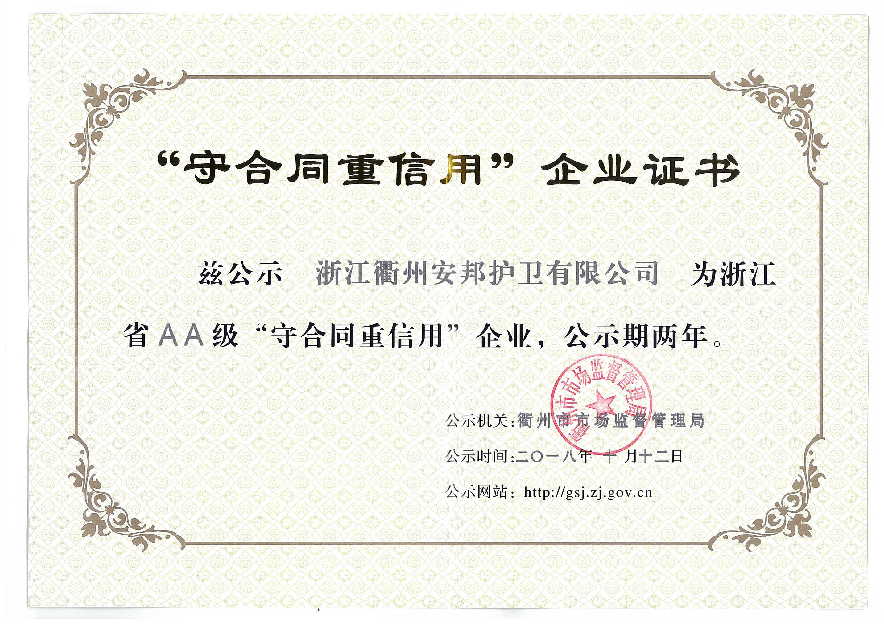 始终把“诚信为本”视为企业经营发展的根本,重视企业合同信用管理,不断加强企业合同信用管理的信息化、规范化建设,守法经营,诚信经营,继续为活力新衢州、美丽大花园建设做贡献。