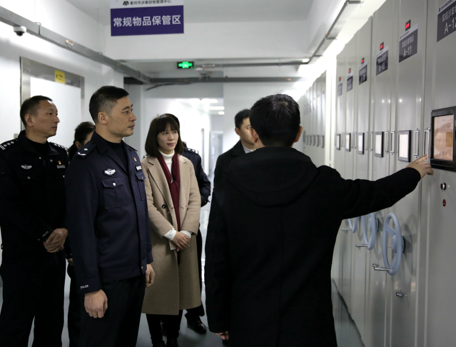 规划建设的衢州市涉案财物管理中心,详细听取了案管中心的建设情况,并围绕信息安全、保管措施、运行机制等重点问题进行了深入细致的了解。王顺大对案管中心集约管理、线上流转的管理模式给予了肯定,提出要将案管中心建设成为规范化、智能化、集约化的现代化管理中心,为基层办案单位、一线民警减压减负,做到“一次也不用跑”。