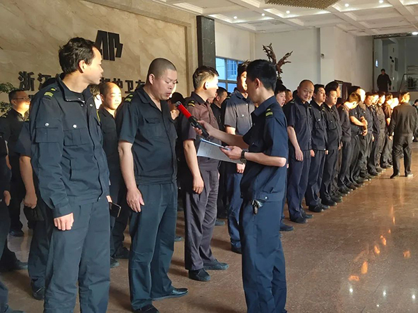 三、狠抓枪支弹药安全管理。一是对枪支管理使用人员开展违法犯罪、个人征信、酗酒等行为的排查工作,每日进行酒精测试,查询结果均正常;二是组织枪支管理使用人员签订《规范用枪承诺书》,确保枪支弹药安全责任落实到位;三是邀请衢州市公安局柯城分局对公司新建枪弹库进行检查验收,经查验,同意投入使用;四是通过查看台账、现场检查、视频监控抽查等方式对枪弹库、枪支弹药管理制度执行情况进行专项突击检查,确保枪支弹药管理绝对安全;五是对枪支管理使用人员进行枪支弹药法律法规、枪支构造、保养、分解结合等方面的培训,并拟计划组织开展防暴枪支大比武活动。