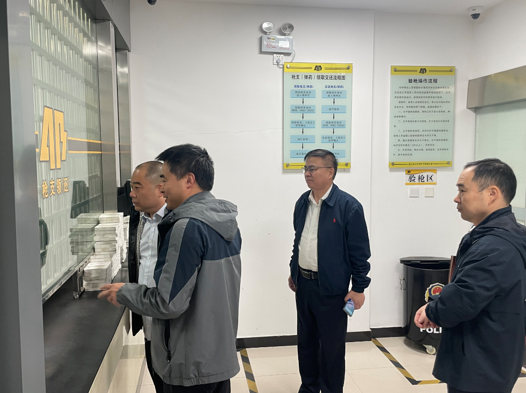 胡秀荣带领张霖一行参观了公司智能枪弹库和综合信息运维中心,并详细介绍了公司数字智能监管平台的运行情况。