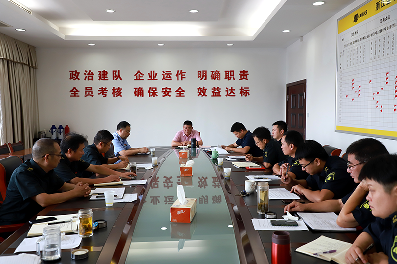 公司2018年半年工作会议精神。公司领导班子成员、警务联络官及各部门、大队负责人参加会议。