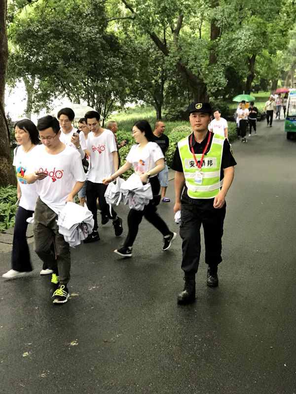 526日早上8时,伴随着蒙蒙细雨,浙商银行环湖健身行在浙商银行总行领导共同推动启动杆后正式开跑,参与人数共计1500余人。安全服务公司为本次健身行活动提供全程安全护卫。