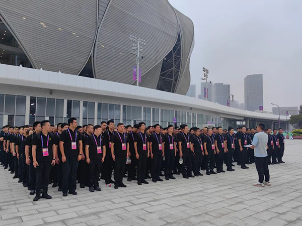 公司先后派出37名管理团队和骨干在杭州参加亚运安保工作。公司现场运营团队主要负责入驻安全工作的指挥、安保人员的全场联络、指令的上传下达、安保人员的用餐服装住宿用车急救药物储备等后勤保障、各区块装备配置、应急处置以及现场督导和考核等。现场执勤人员配合省特勤局进行场馆封闭期的巡查、VIP区域值守以及演职人员进出口的秩序维护,亚运锁闭期奥体中心核心区的秩序维护和巡逻、警戒区门岗值守、证件预检、查验、巡逻管控、夜间管理,配合滨江分局指挥赛场周边电动车辆的日常管理维护、团队出行保障、秩序维护等。尤其在中秋国庆期间,田径赛事众多,竞走、马拉松等赛程时间长,队员人均日工作时长达17小时,连续站立10多小时,日均休息不超3小时,因病坚守岗位10余人次,充分展示了安邦保安讲政治、讲纪律、讲奉献的铁军风采。