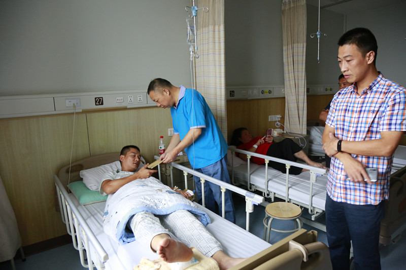 8月26日上午,公司党委书记、董事长、总经理叶荣军,总经理助理钟志武一行在丽水安邦智能科技有限公司副总经理叶德峰、褚峰的陪同下来到丽水市中心医院,看望慰问因公受伤的员工双继东,为员工送上慰问金。