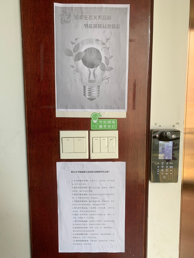 本次活动通过悬挂横幅、发放宣传单、张贴“随手关灯”“关注点滴”“双面打印”等节能小标识的方式,引导提高员工关于电、水、纸等方面的环保意识。同时,组织员工围绕“文明餐桌行动”、“垃圾分类回收”、“合理使用空调”、“一水多用”等主题开展讨论,学习节能生活小常识,积极倡导员工以绿色低碳的生活方式支持节能减排,把“低碳生活”和“绿色办公”的理念,融合进日常工作和生活细节里。