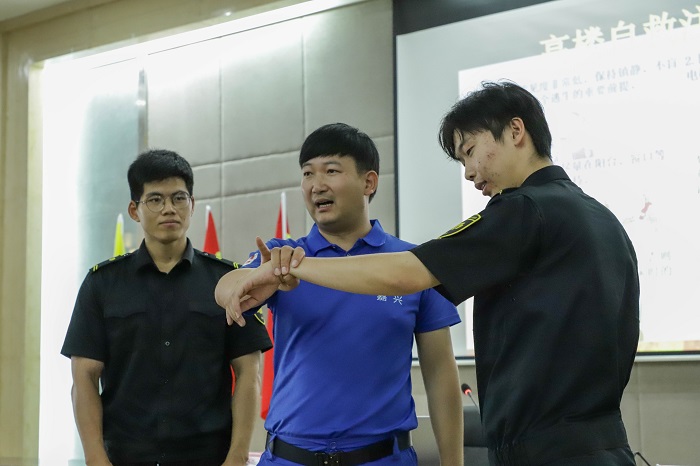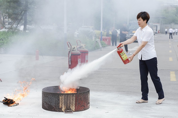 随后开展消防器材实操,锻炼员工的实战能力。嘉兴蓝天救援队的老师演示了正确使用灭火器的方法,员工们撸起袖子亲身学习体验,确保在危机关头能正确熟练使用。