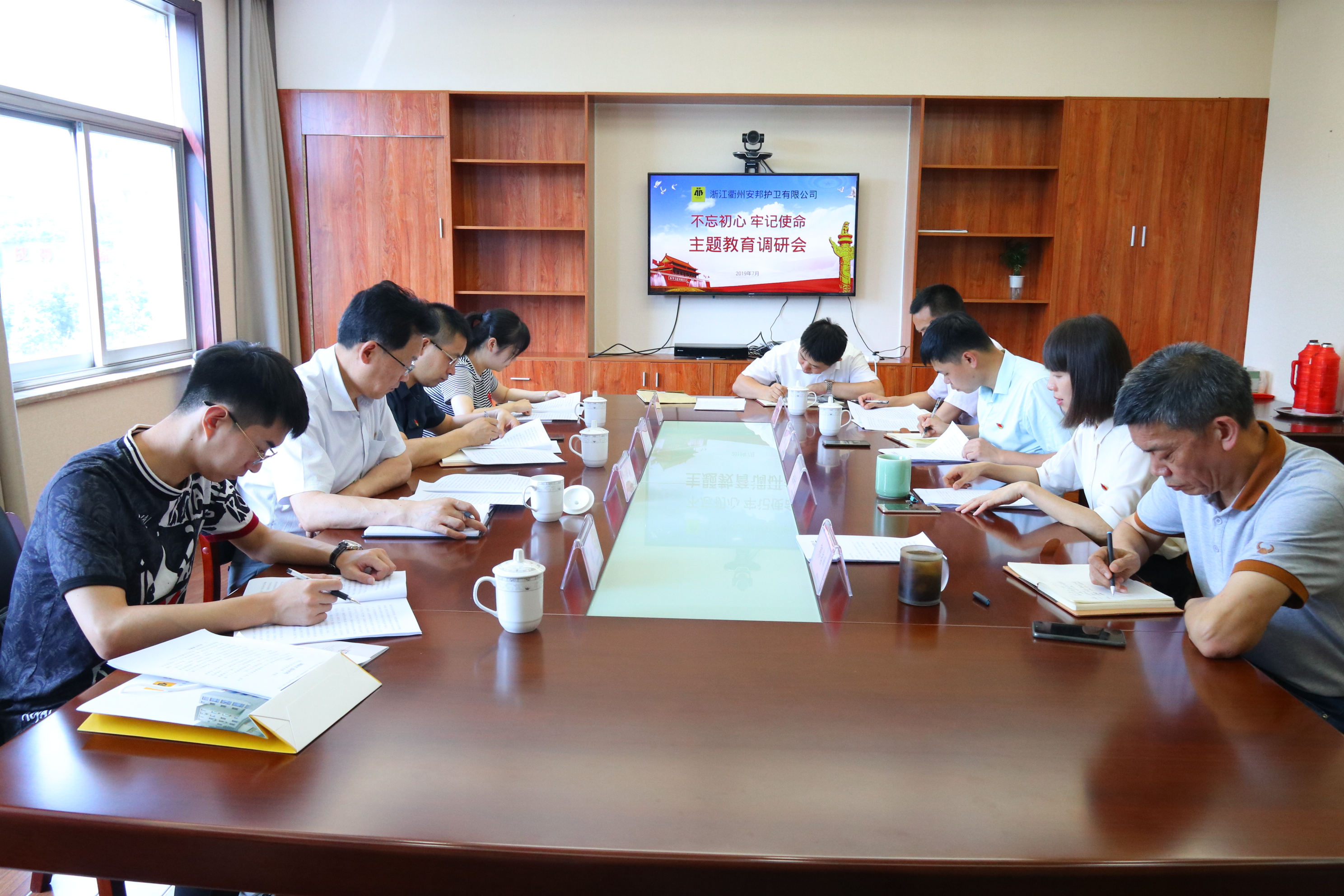 有限公司,开展“不忘初心、牢记使命”主题教育调研,衢州公司党委书记、总经理张淑芬,党委副书记、纪委书记郭启明,党委委员、副总经理郑胜,党委委员、总经理助理琚苏炳参加调研会。