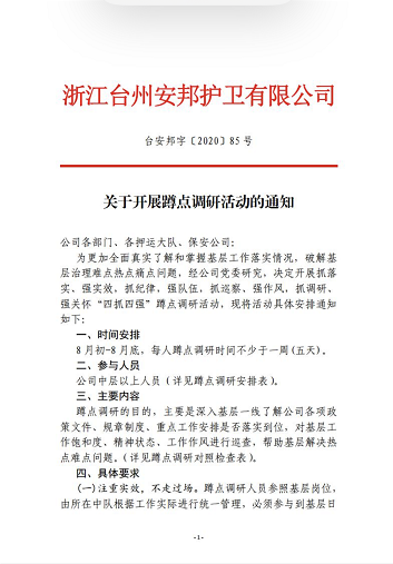为确保蹲点调研人员起到展示公司良好作风的重要窗口作用,真正把公司狠抓落实的作风和举措带到基层,所有人员蹲点期间做到“三个不”: