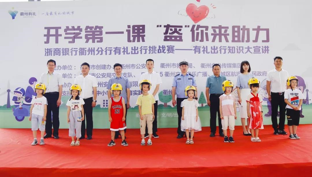 有限公司协办的“开学第一课 ‘盔’你来助力”有礼知识大宣讲活动在党建治理大花园样板乡镇航埠镇——衢州市中小学素质教育实践学校举行。市精神文明建设指导中心主任、市创建办专职副主任周宏波,市公安局党委委员、交警支队长余水陆,柯城区航埠镇镇长徐卫民,衢州市教育局校园安全监管处处长程贵山,衢州广电传媒成人主播
