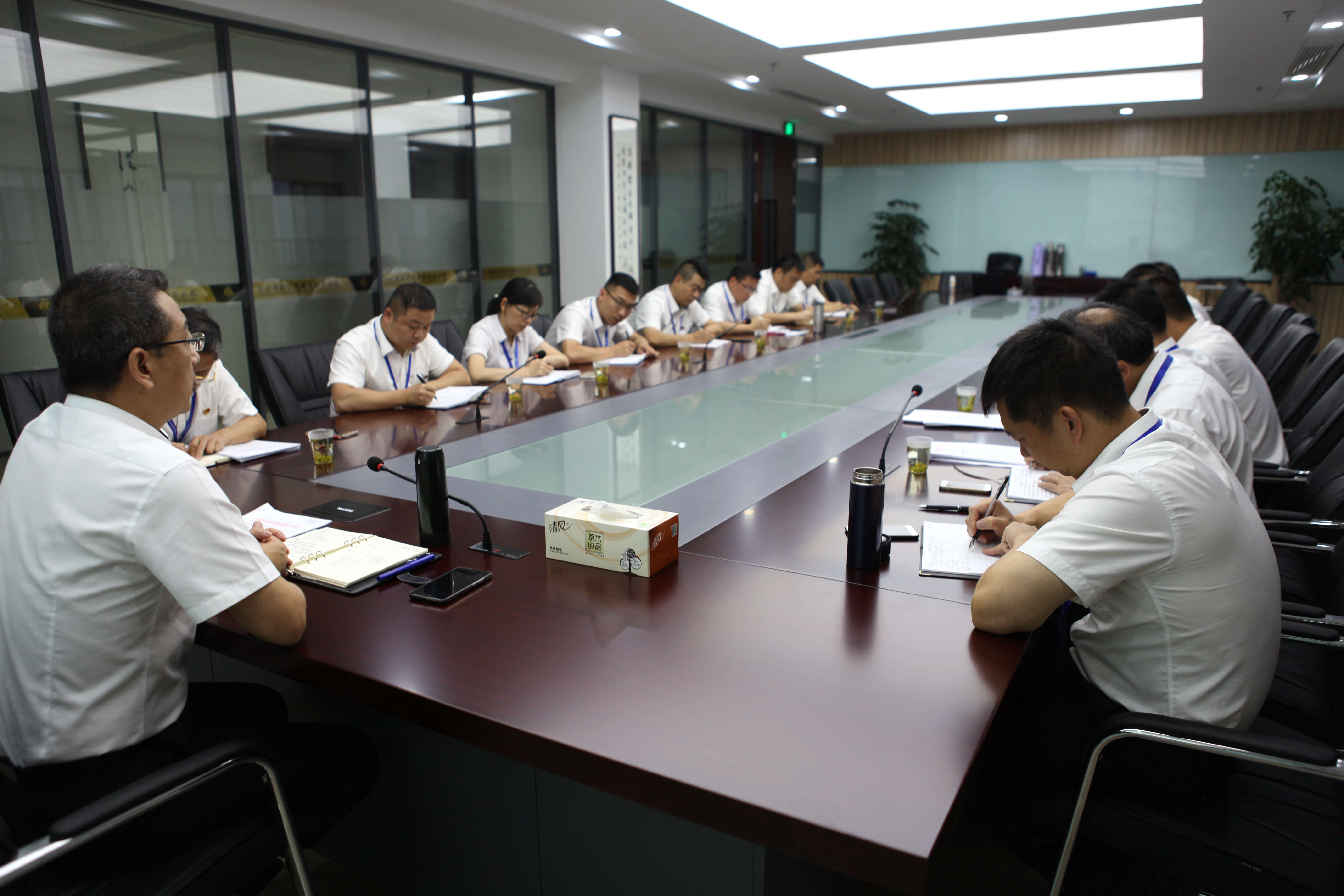 2018年6月4日,台州公司组织召开党委中心组理论学习(扩大)会议,学习传达成人主播 公司2018年党建暨党风廉政建设工作会议精神,深入探讨新时期公司党建及党风廉政建设面临的新课题、新局面。公司党委班子、各党支部书记及各部门负责人参加学习。会议由公司党委书记、董事长、总经理李万新主持。