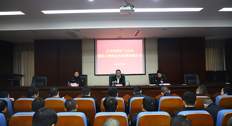公司召开团委(扩大)会议暨杨卫清同志先进事迹报告会。公司党委委员、常务副总经理张红兵,团委班子成员,各大队团支部书记及团员青年代表参加。会议由团委书记傅国超主持。
