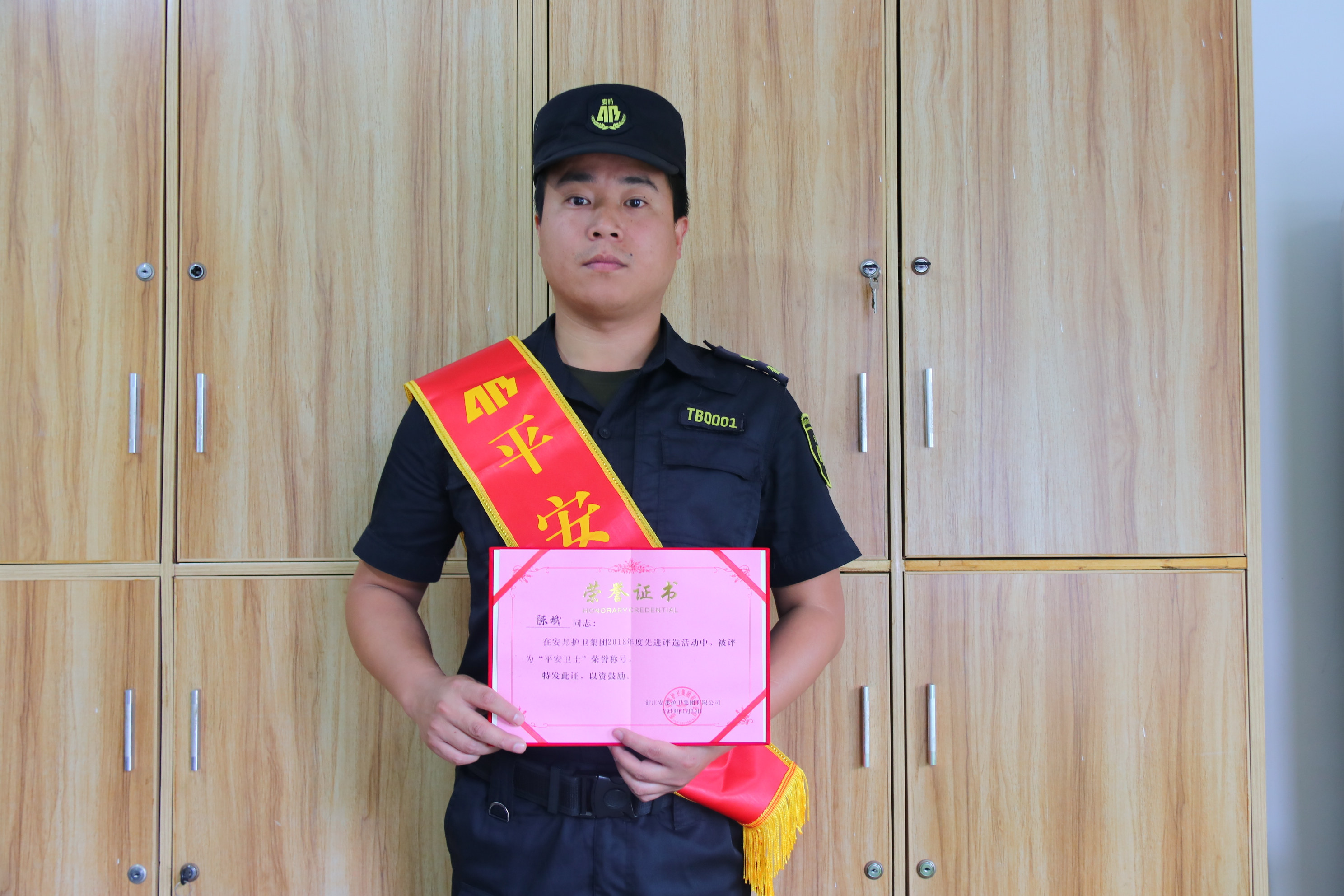 陈斌是第一批加入安邦特保大队的队员,他严谨自律,在执勤纪律和考核制度上零扣分,连续两年以全优的成绩被评为公司“优秀员工”。2018年获成人主播 公司“平安卫士”荣誉称号。