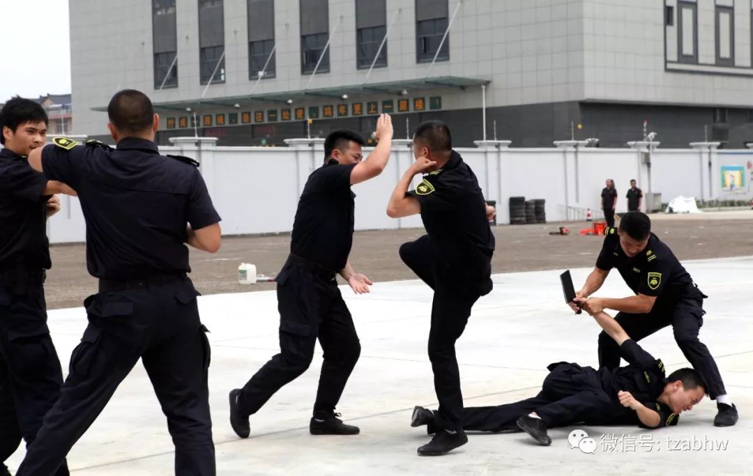 单个军人队列动作、班队列和擒敌拳组成的综合技能演练由公司三个大队的队员们表演。整齐的步伐,标准的动作,高昂的精气神获得了现场领导和客户的阵阵掌声。
