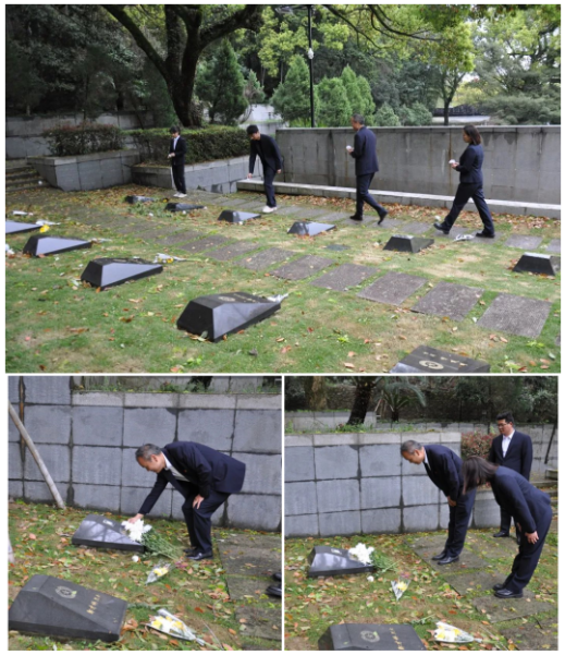 随后,大家列队至烈士墓园,依次向烈士献上小白花并致以三鞠躬,满腔敬意都蕴含在这默默的三鞠躬中。