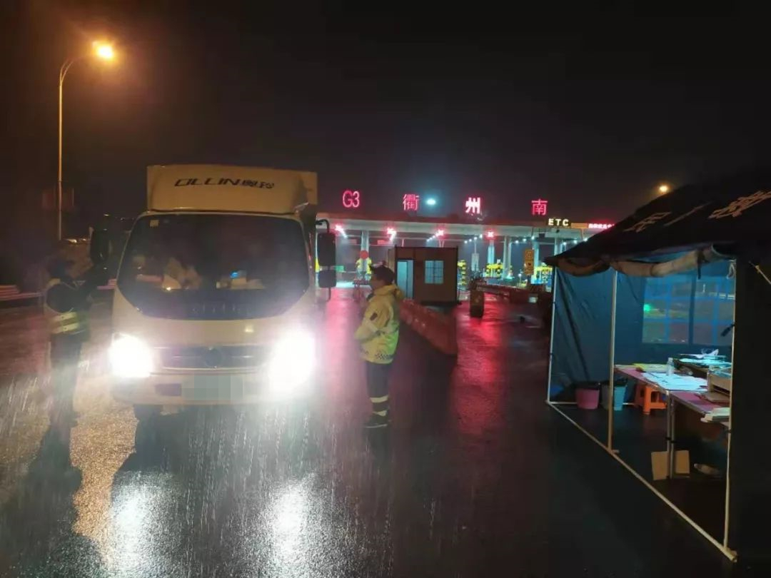 1月24日晚,衢州公司接到衢州市公安局指令,要求组织力量赶赴衢州高速东、西、南三个进出口,支援执勤交警执行疫情管控任务。“疫情就是命令,防控就是责任”,衢州公司连夜调配力量、动员部署,自1月25日至今,衢州公司高速出口执勤团队50名队员每天有36人出勤,保证执勤岗位全天候24小时不间断,与交警、路政、检疫部门一道,坚守衢州防疫战线主通道。