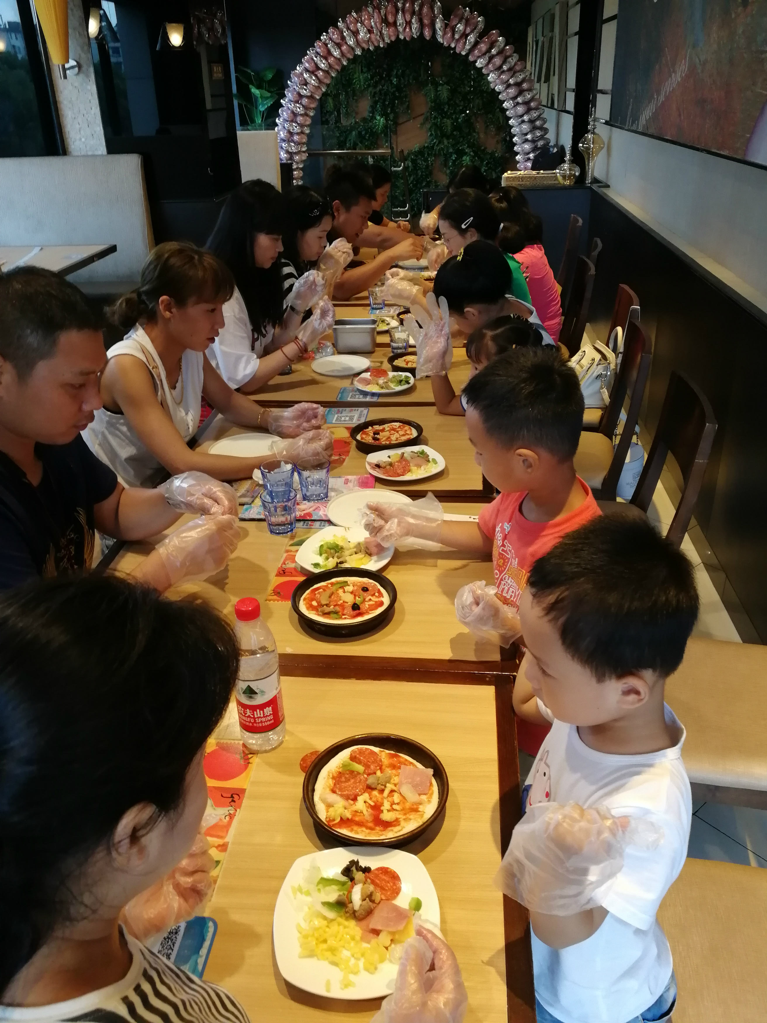 活动开始前每个家庭的家长跟孩子都早早来到活动场地,满怀着对披萨制作的好奇和热情在等待着。现场披萨老师通过互动的方式,给大家讲解了披萨的历史,示范了披萨的制作过程。随后,小朋友们通过不同食材的相互搭配,在披萨上画出自己喜欢的图案。时间一点一点地过去了,孩子们的作品也一个个“新鲜出炉”了,看着自己的劳动成果孩子们都吃的很开心,脸上洋溢着幸福的笑容。