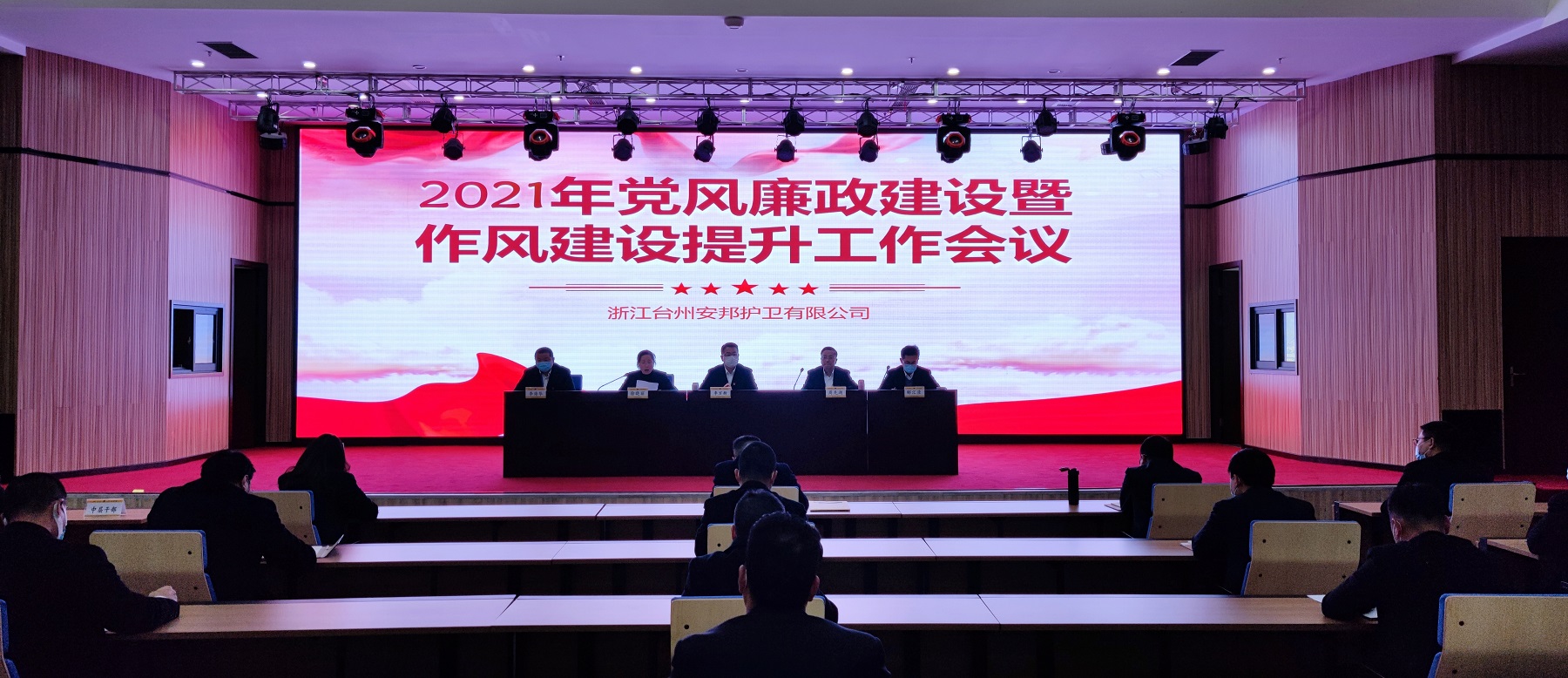 2月22日,台州安邦召开2021年党风廉政建设暨作风建设提升年工作会议,以“新春第一会”的形式,总结部署党风廉政工作,重点安排2021年作风建设提升年相关工作。公司全体行政管理人员、各大队中层干部共113人参加会议。