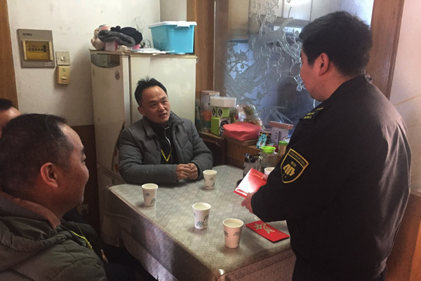 近日,湖州公司领导一行,带着公司工会浓浓的关怀之情,对公司员工吴建荣、钱军、汤勇斌、周钟忠、宋国荣、姚伟和张倚伟等7户困难职工进行了春节前的走访慰问,为他们带去了米、油等日常用品,使困难职工感受到大家庭的温暖。
