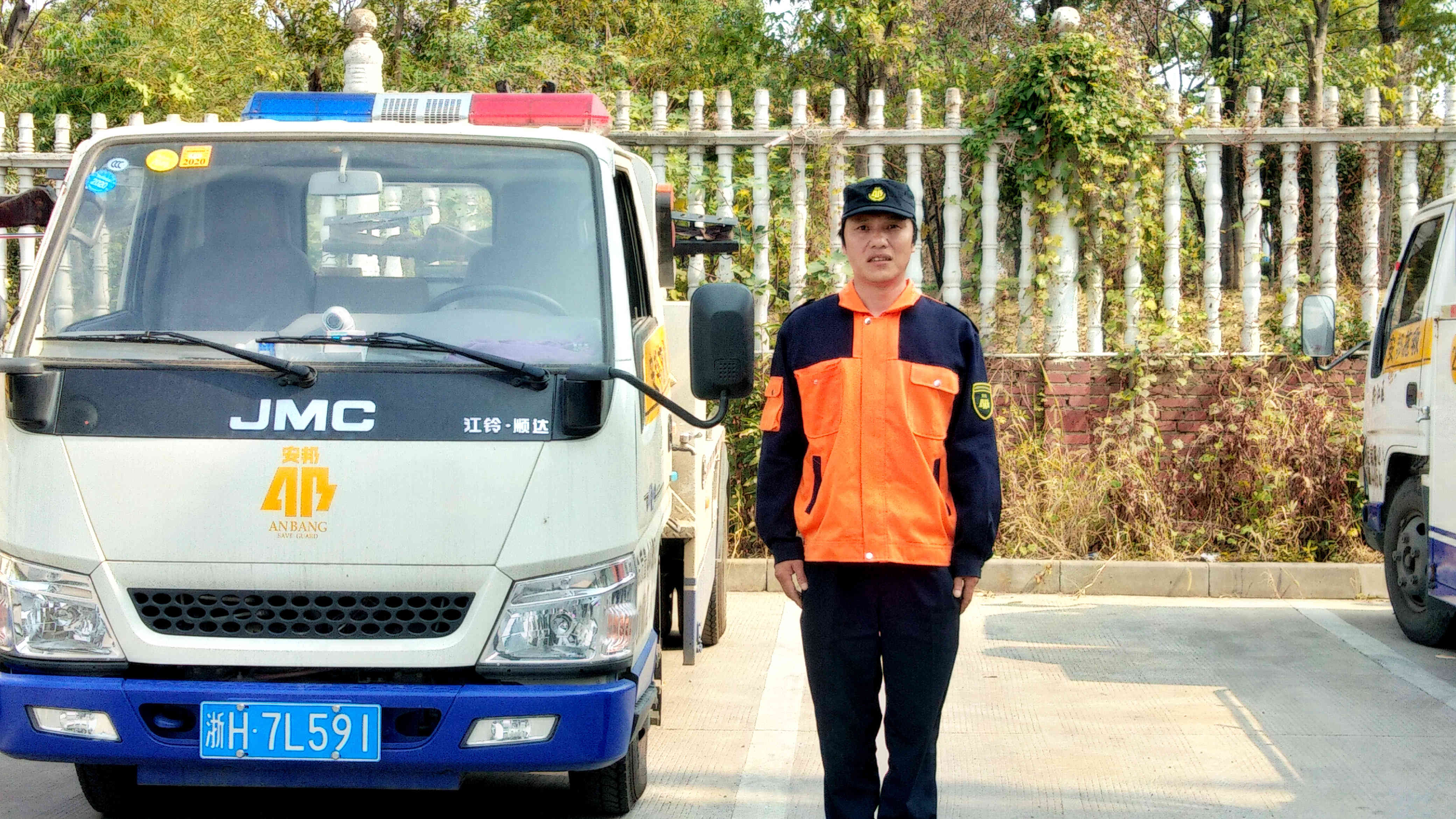 叶洪木,男,2018年7月进入浙江衢州安邦交通施救有限公司,成为一名施救员。