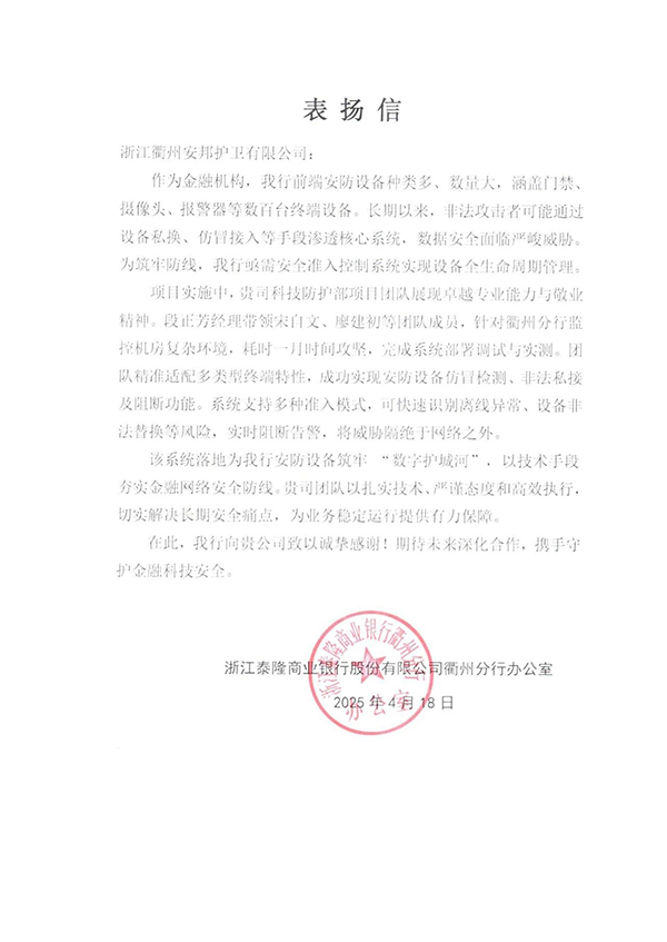 在项目推进过程中,团队成员凭借扎实的专业知识和丰富的实战经验,深入分析攻击特征,抽丝剥茧寻找解决方案。他们反复测试,不断优化技术方案,最终以领先的技术手段,成功为泰隆银行构筑起坚不可摧的金融网络安全防线,有效解决这一长期存在的安全隐患,为客户业务的稳定运行提供坚实有力的保障。