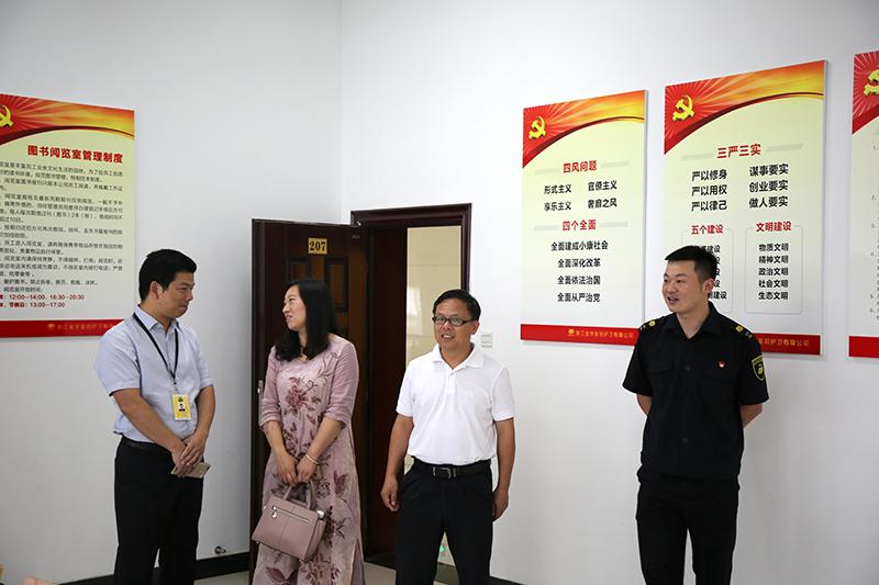 张向忠一行实地参观了公司党建阵地,详细了解金华公司在党组织设置、班子队伍建设、党内组织生活、工作运行机制等方面的好经验好做法。对公司党建工作取得的成绩予以肯定。他表示,安邦公司对党建工作重视,氛围浓厚,基层组织建设基础扎实,党建引领作用发挥明显,值得学习、推广。希望双方继续加强沟通交流,共同促进党建工作大发展。(办公室 吴瑜民)