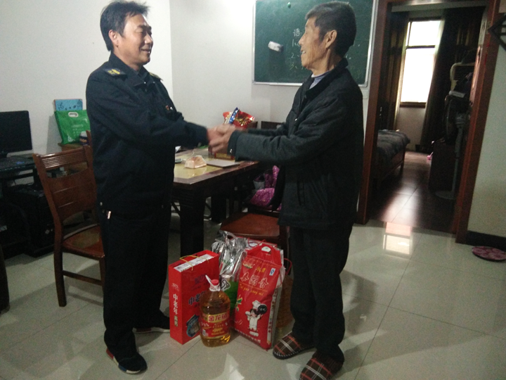 此行分别慰问了农商行中队因患胃息肉术后在家休养的徐明强以及武义中队队员高东军家属。庄期勇将慰问品送到他们手中,并详细询问康复情况以及家庭生活状况,表示关切鼓励,争取早日康复。徐明强以及高东军家属对大队领导和同事们的关心表示感谢。