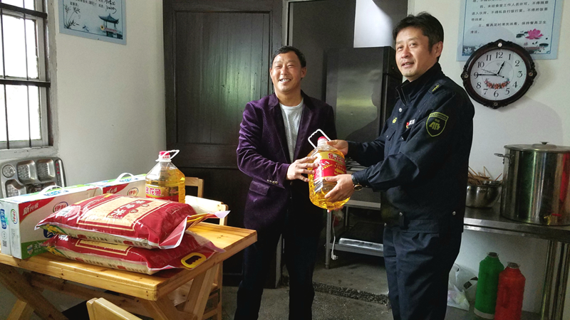 支部还为银坑村居民养老服务中心的老人们送去了米油等慰问品。(江北大队)
