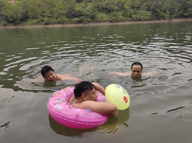“手放开,双腿用力蹬夹水,换气时节奏要掌控好……”。下水前,支部书记朱海挺带领队员一起热身,叮嘱大家穿戴好防护装备,亲自讲解、示范游泳基本动作要领,“手把手”教导憋换气、踩水等游泳技巧,重点对“训练组”人员进行“一对一”释疑解惑,一步步引导队员掌握游泳技能,确保人人都能学有所获、学有所成。